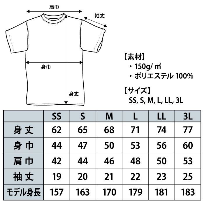 ・サイズはSS、S、M、L、LL、3Lからお選びいただけます